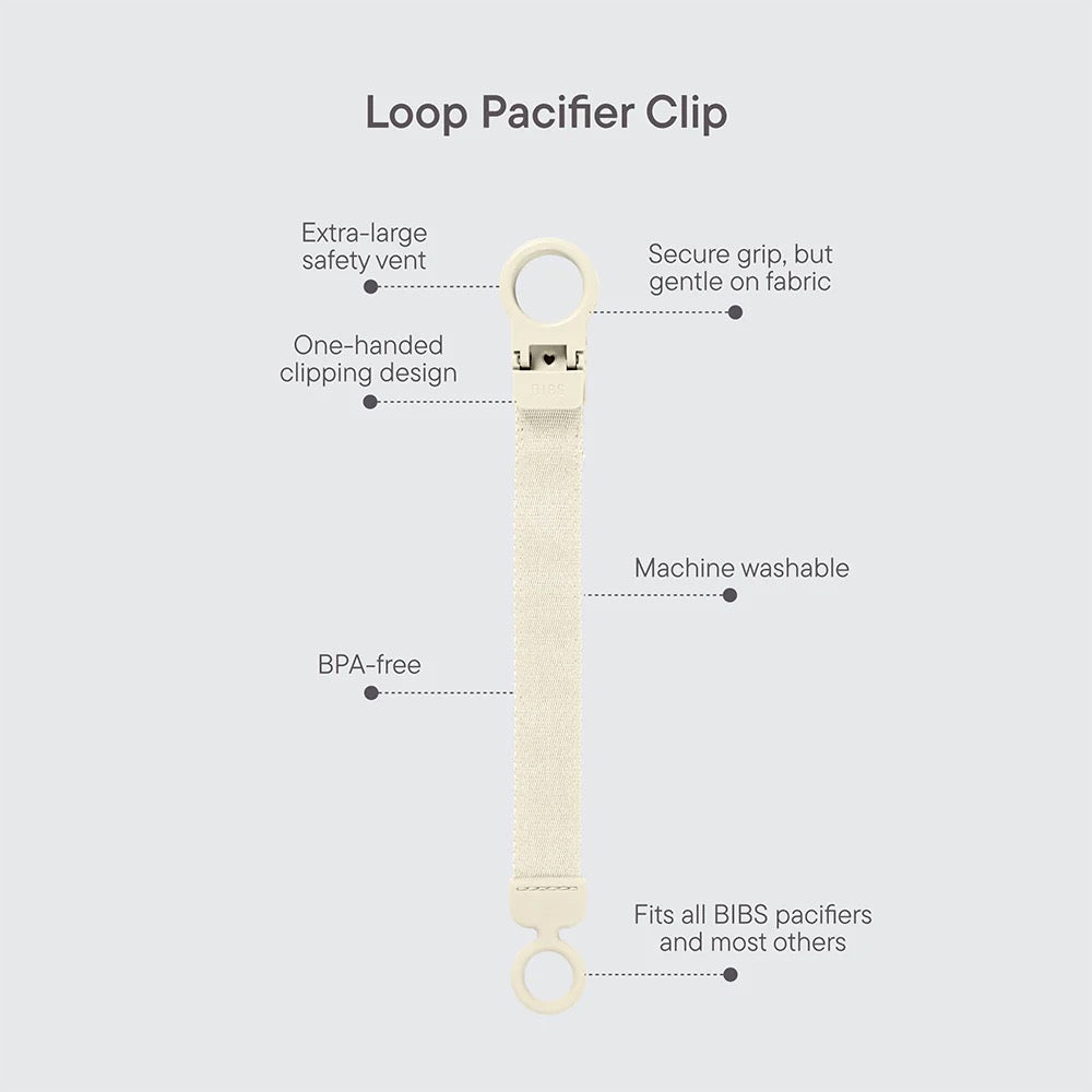 Den smarte én-hånds clip gør det hurtigt at sætte på, og universal ringen passer sikkert til alle BIBS-sutter og de fleste andre mærker.