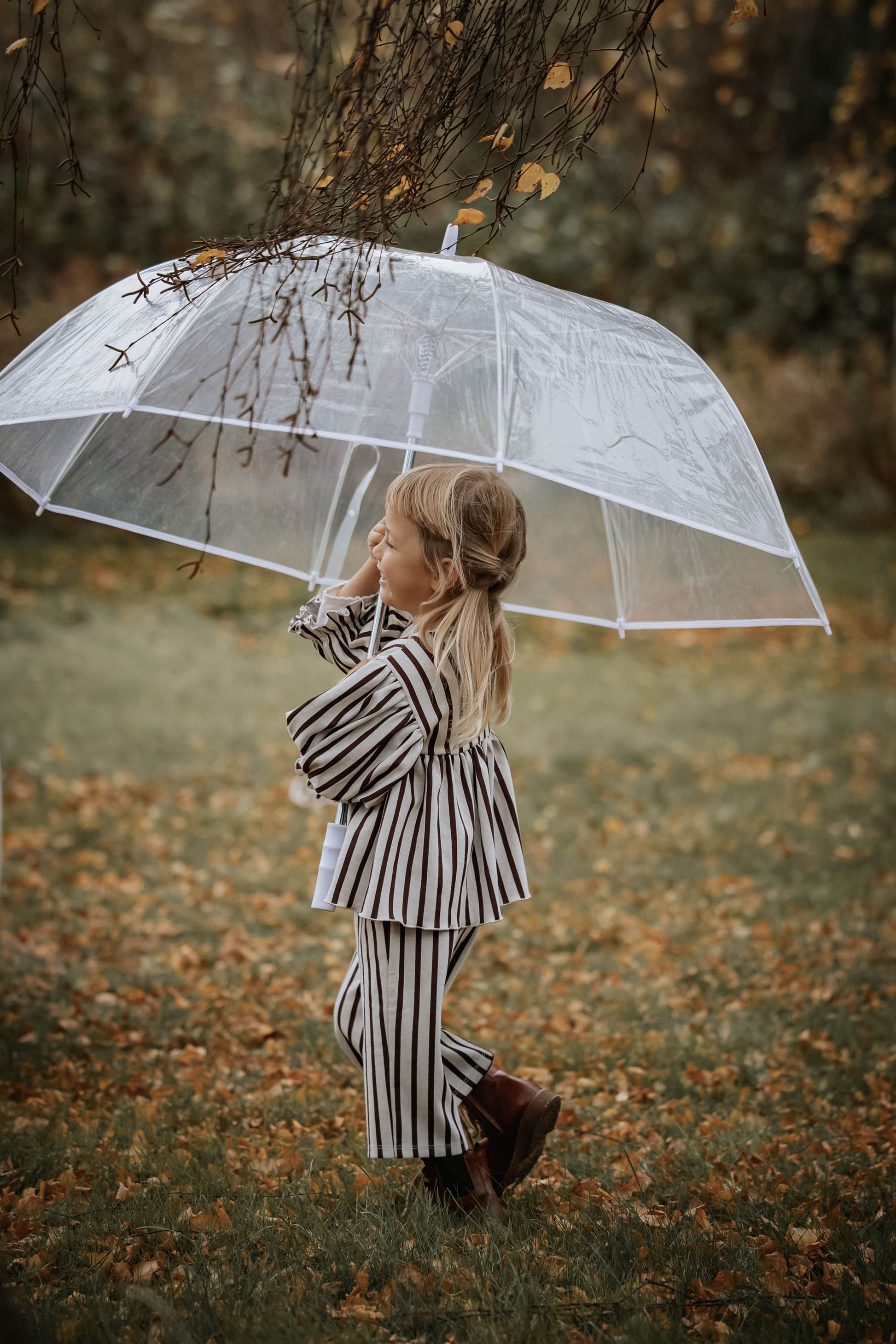 Snit ved brystet og skørt med ekstra volumen giver et feminint udtryk, mens ballonærmer med elastik og lille flæse forneden tilføjer fine detaljer.