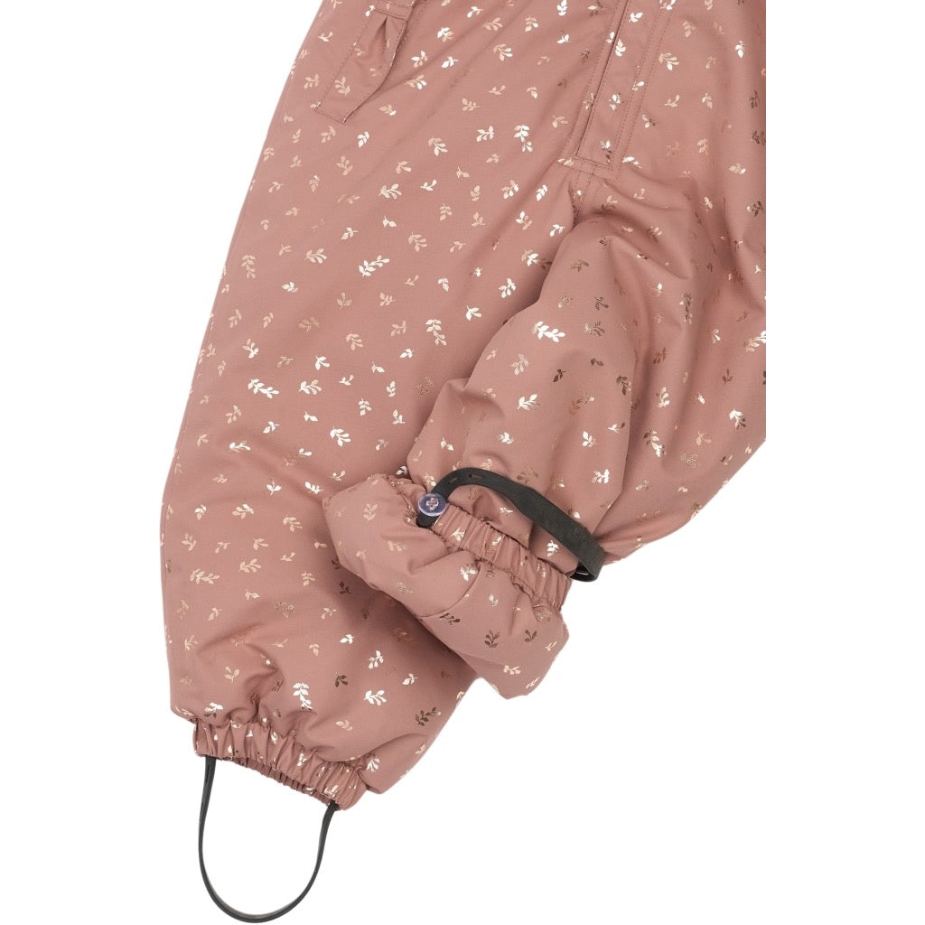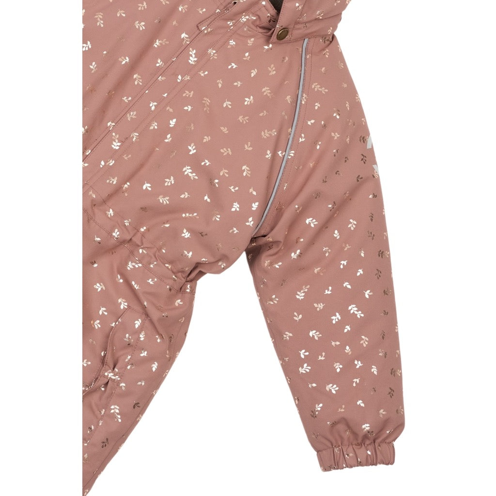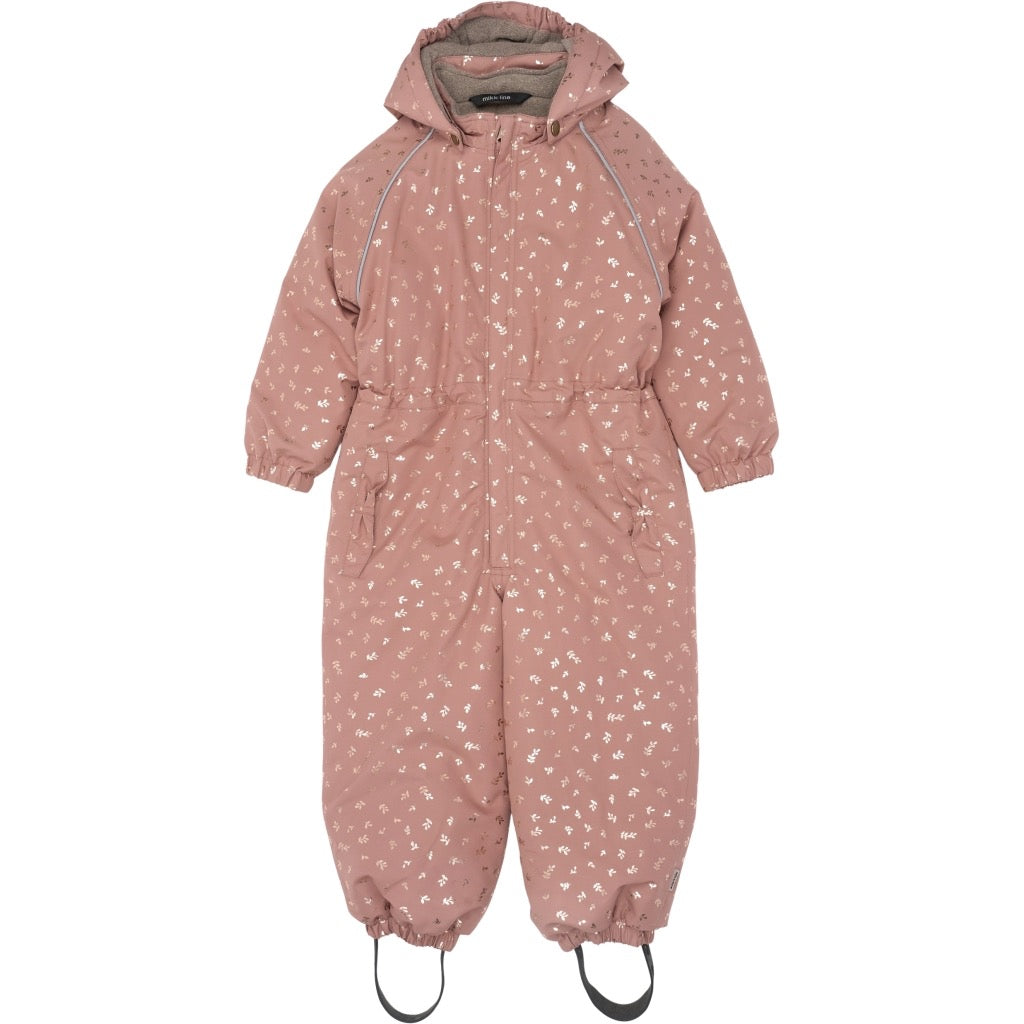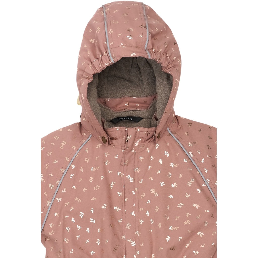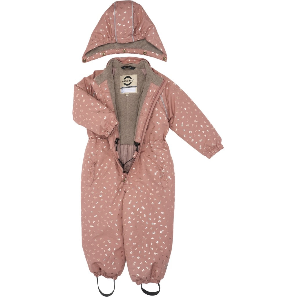 Indersiden er foret med blødt fleece på overkrop, hætte og manchetter, mens ærmer og ben har et glat taffetafor, der gør dragten nem at få af og på.